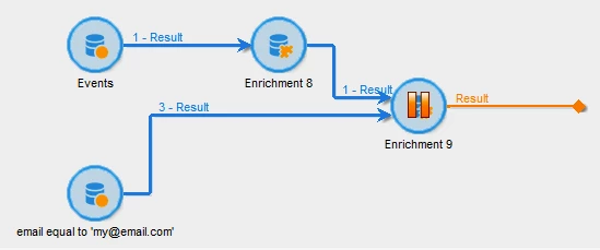 Above there is a current set up. The issue I encountered is in Enrichment 9: My primary set is from query where I'm looking for email address (recipient schema). There is added a link (type 1N) to temporary schema (enrichment 8) and I can't select any matching source and destination expression to use a simple join.