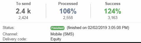 In this case we have target of 2424 however Process and success seems to be more than 100%.
