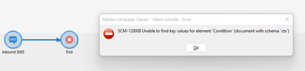 1. Whenever I try to edit the query and save the workflow, it throws an error "Unable to find Key values for the element 'Condition' (document with schema ctx) ". Why is this happening?