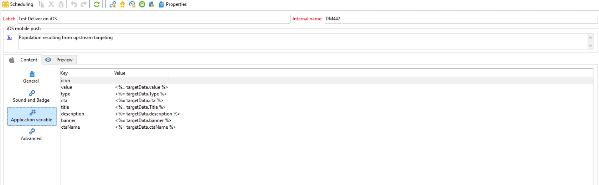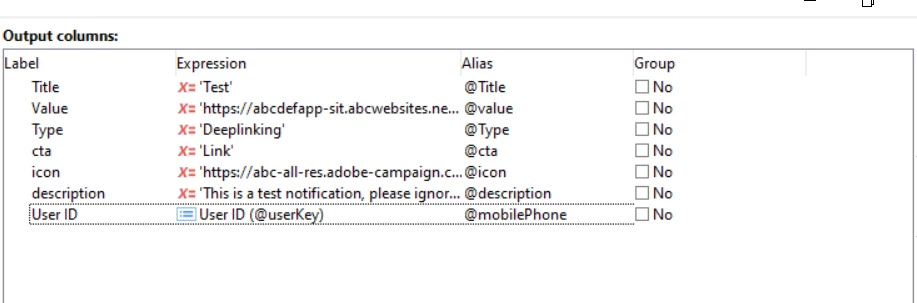 We are sending push notification in iOS and Android. we are Passing the values inside the enrichment activity in Workflow and loading it it android / iOS delivery. Please find the screenshots below. Here inside the 'Value' parameter, we are passing the url