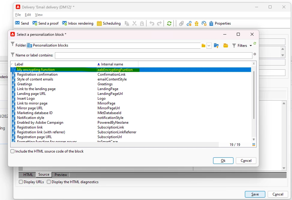 There is one piece of code which encrypts the URL and that is in JS. Basically want to include that in PB and ultimately include that PB in HTML so that it creates encrypted link for all the HTML templates. How we can achieve this.