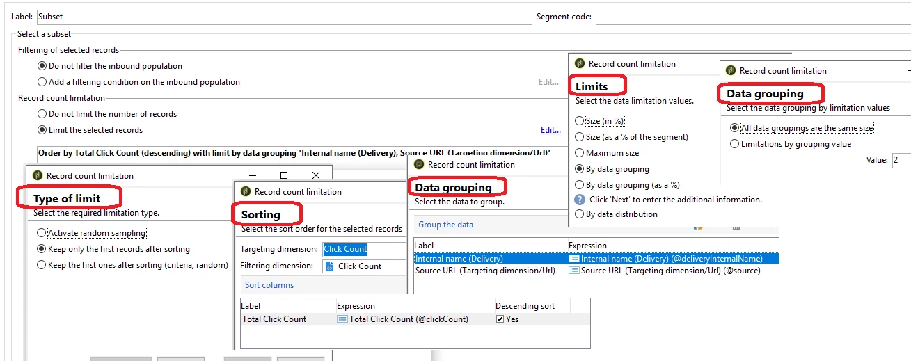 XTK-170036 Unable to parse expression ' AND [temp:extract-grp:@internalRank]<=2'.