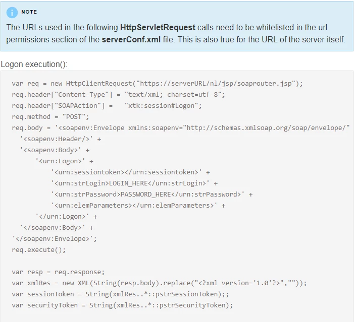 According the Adobe document below, it seems like the server URL https://serverURL/nl/jksp/soaprouter.jsp needs to be white-listed in the url permissions section of the serverconf.xml file. I am confused, I thought my computer IP need to be white-listed in the security zone area in serverconf.xml file. Can anyone clarify which IP or URL need to be whitelisted and send me the sample code to be added to serverConf.xml?