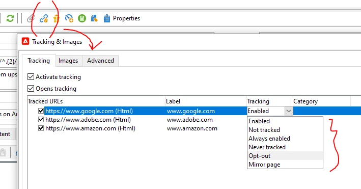 We don't receive optouts, web, transact, etc. How do I include these types within the mail tracking?