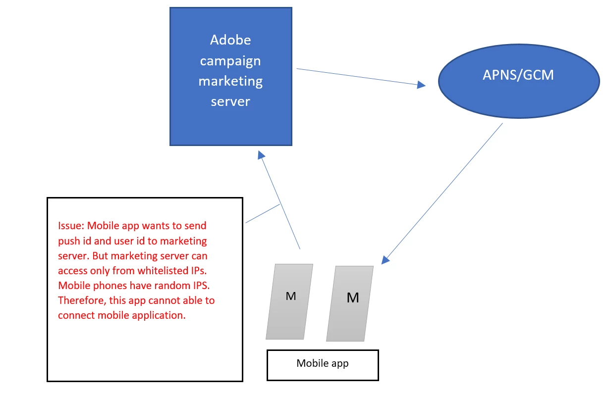 I want to know, how to link the on-premise marketing server of Adobe campaign with Mobile SDK for push notification, if only whitelisted IP can connect with op-premise marketing server.