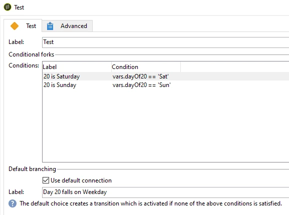 //Default connection Label as 'Day 20 falls on Weekday'