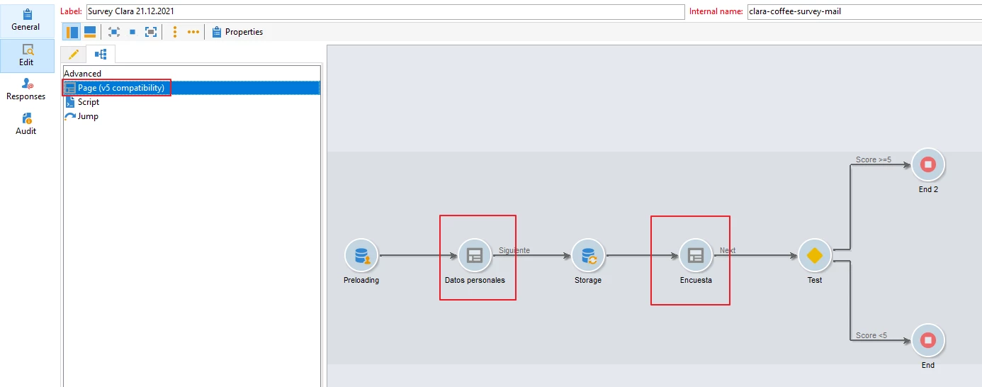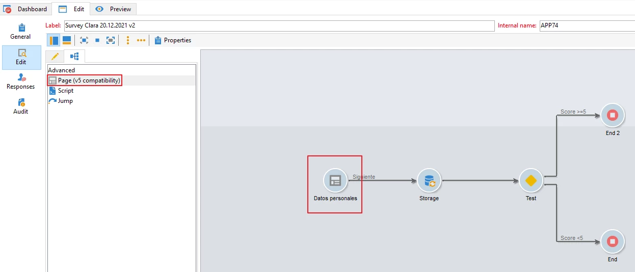 I am testing a multipage survey in Adobe Campaign 7.0 with Page (v5 compatibility), but the responses are not properly stored.