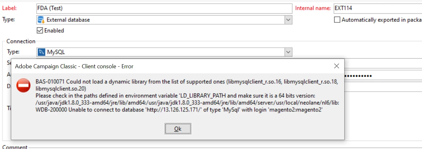 MySQL FDA external account Configuration Error