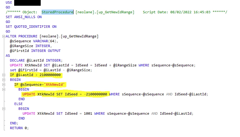 The default StoredProcedure that manage the sequences is set to loop back to negative idSeed if the current Seed is greater than 2 100 000 000 :