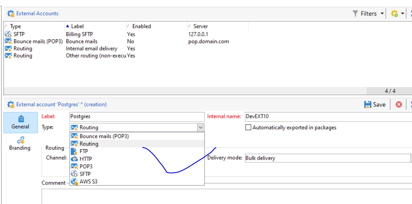 Not able to see external database type while creating external account.