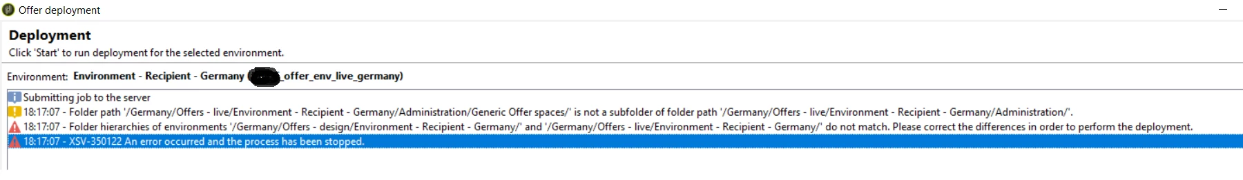 I'm configuring my Offer module (space, category) but when deploying the offer space I'm getting the following error: