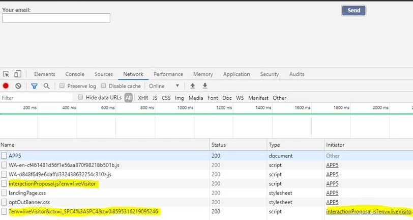 - http://instancename/interaction/?env=liveVisitor&ctx=i_SPC4%3ASPC4&z=0.8595316219095246 (2nd url initiated by 1st url) –but the response is empty. Ideally this url should give back offer response , so that it should be filled after <div id=”i_SPC4”> in web form