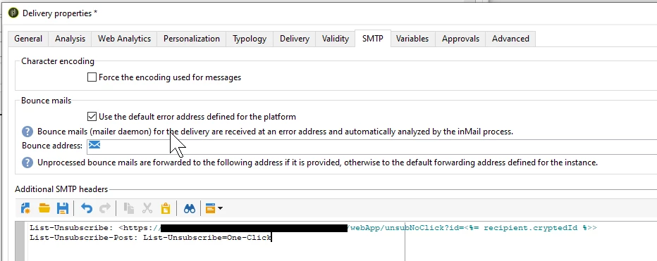 - Configure One ClickList Unsubscribe in the delivery