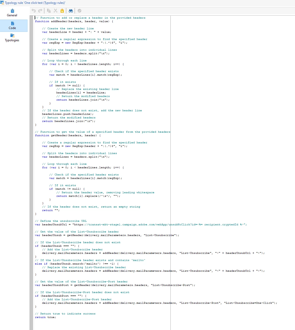 Creating a typology rule to support One-Click List-Unsubscribe