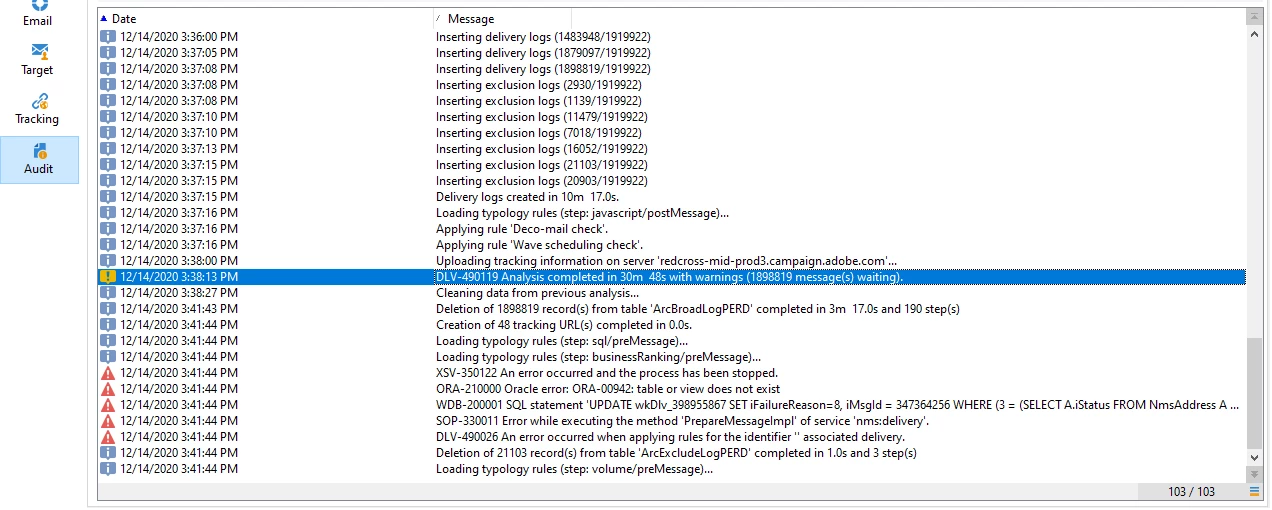 12/14/2020 3:38:00 PM Uploading tracking information on server 'redcross-mid-prod3.campaign.adobe.com'...