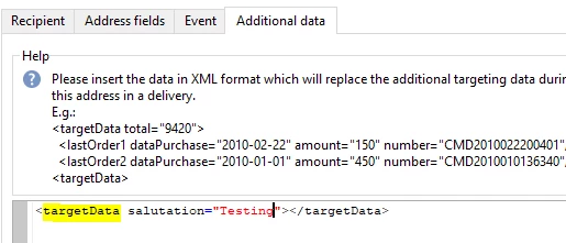 Managed to do it for deliveries without personalization, but when personalization is included an error is thrown in the proof delivery: 'Error while compiling script 'content htmlContent' line 4: targetData is not defined. SCR-160012 Javascript: error while evaluating script 'content htmlContent'.'