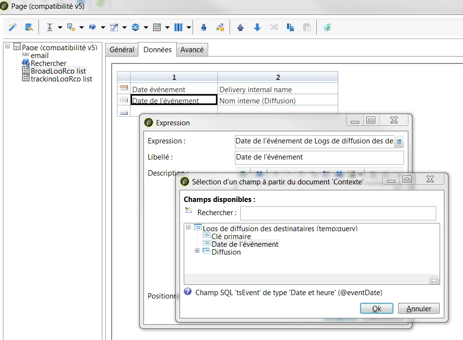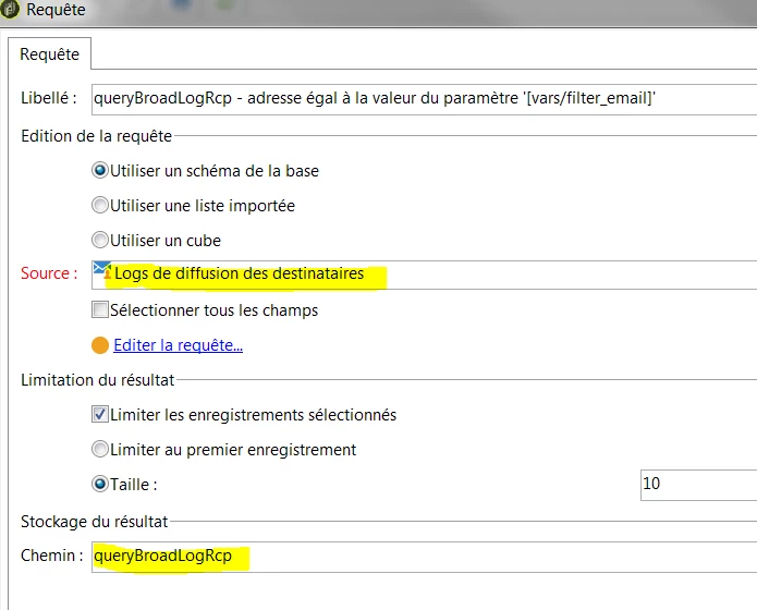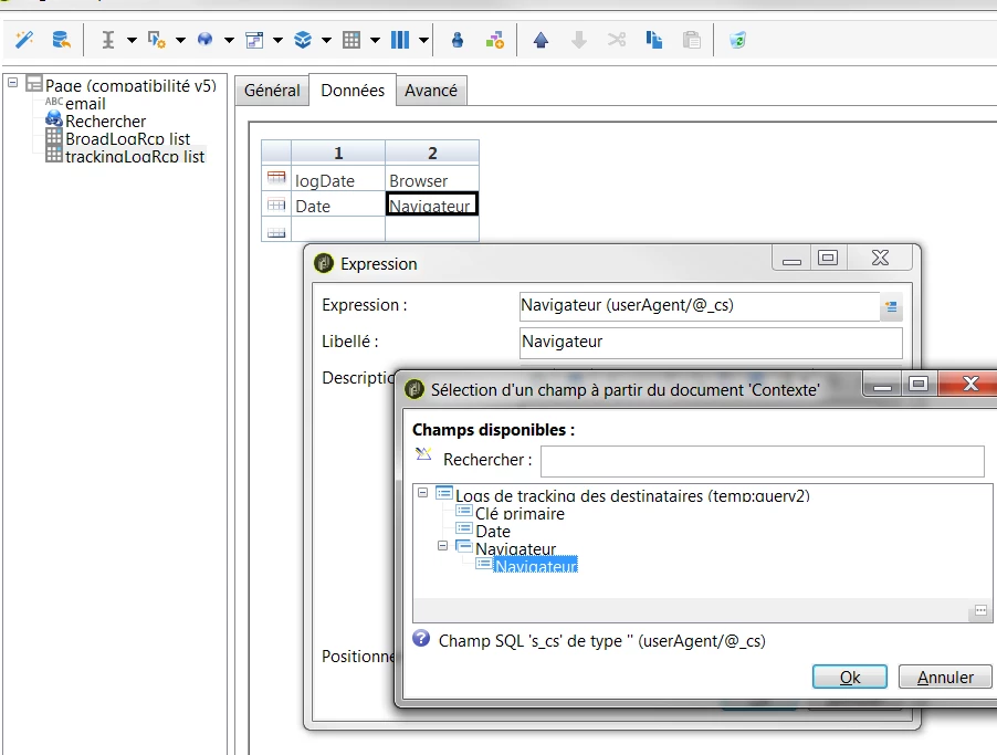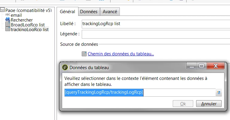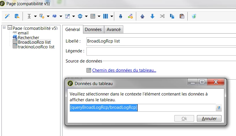 Insert a table object, and choose the query XML object related in path for broadlogs: