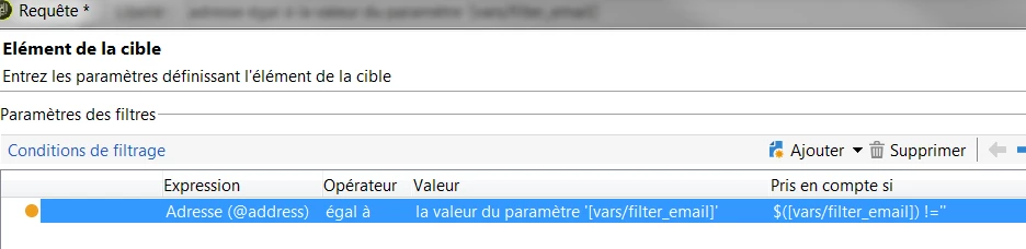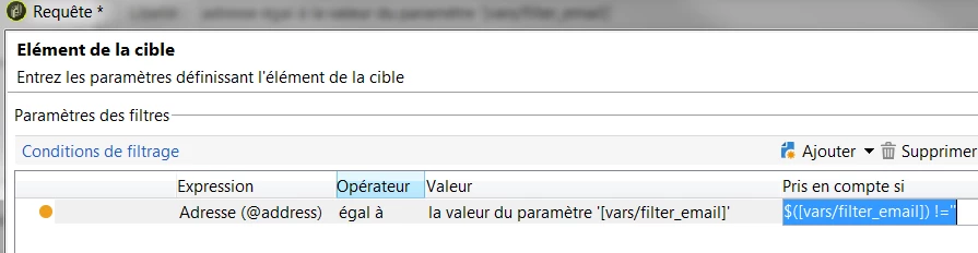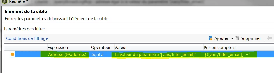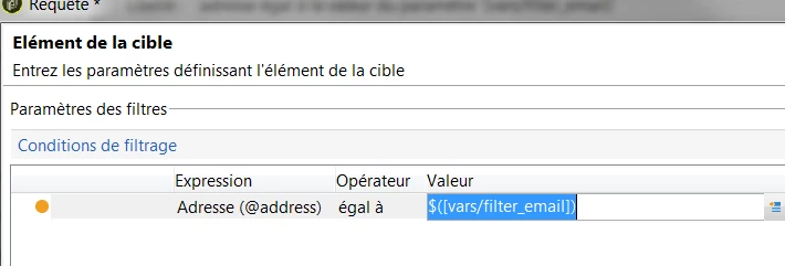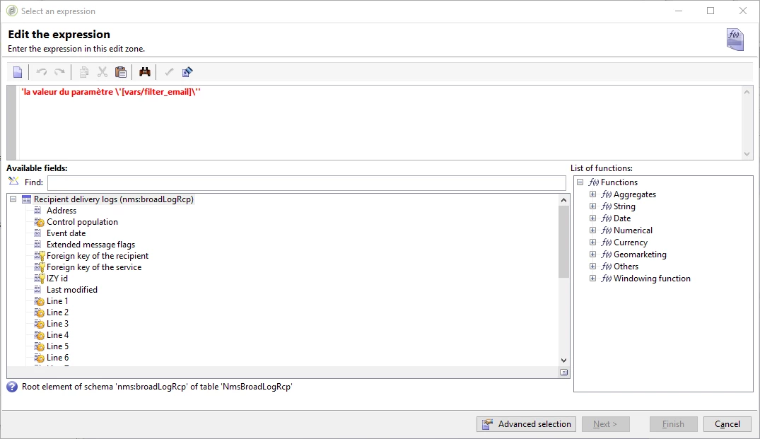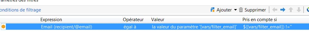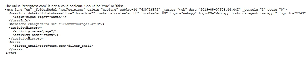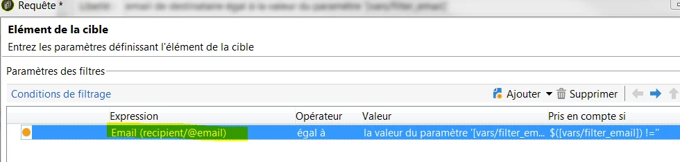 you can filter on @address of broadLogRcp, it is the short path instead of recipient.email: