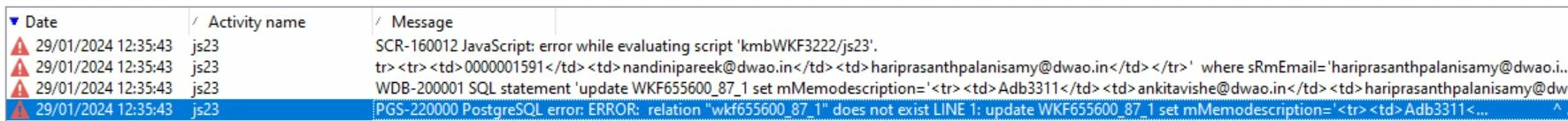Postgresql error while sql execution