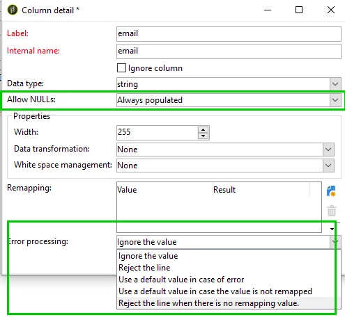 • In the Import Policy workflow, an outer join is formed with the following columns to identify the email address from the Contact Info table