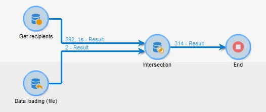 In my example, I have 314 recipients with one of those 2 domains, among my initial 592