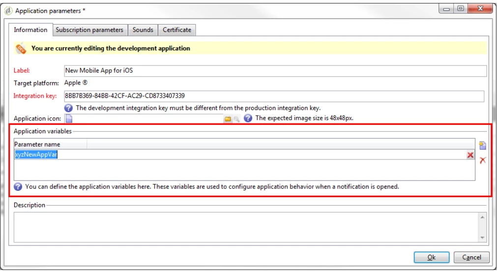 Do we need to add these information like additional parameters/variables (Application parameters), like in the next link?