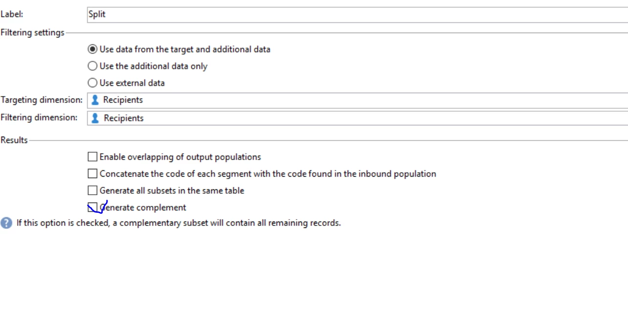 I have no idea why I was getting only two records after the split if I unchecked 'Enable overlapping of output populations'. Any ideas? Thanks!