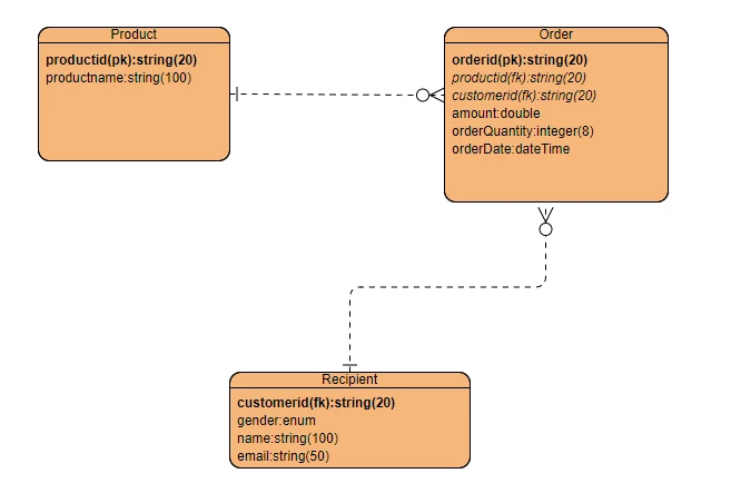 1. Start your first query with the order table. First select all the order where ( amount * order quantity) >5000.