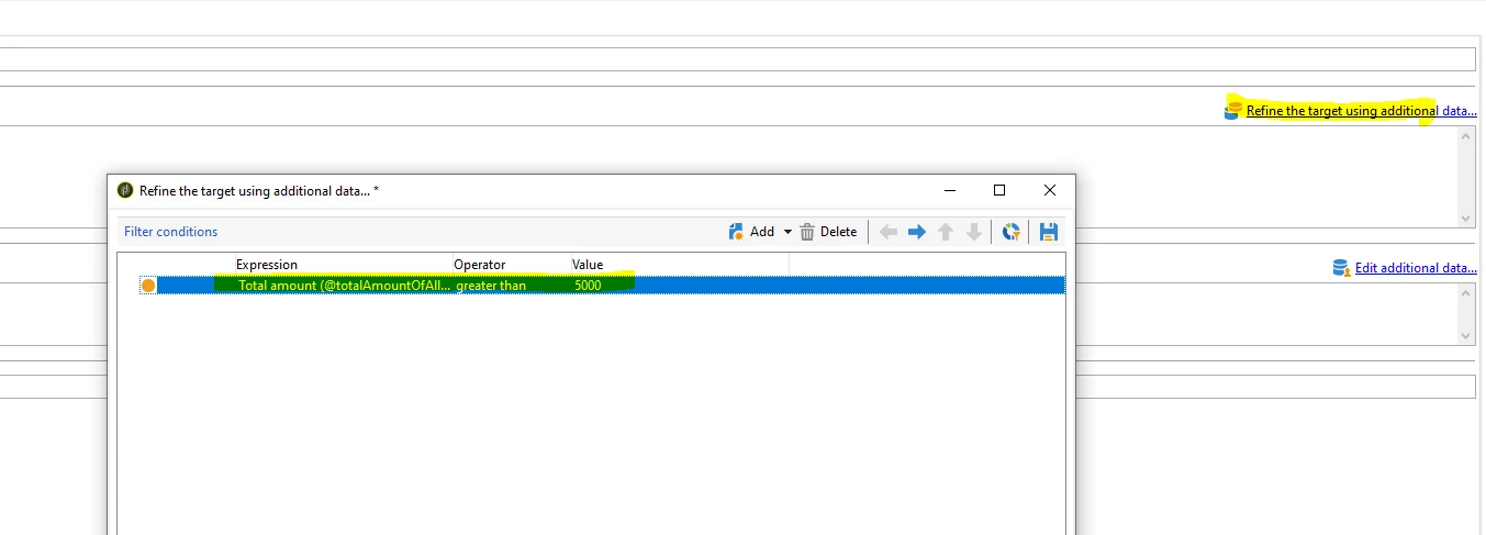 If you want to target if one order's total amount > 5000 then you can use like below.