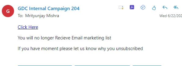 Can anybody help me with this, also please let me know how to check if the recipient has been unsubscribed. Immediate help will be highly appreciated
