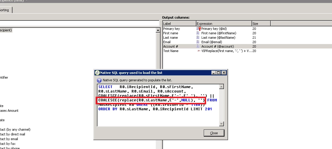 this doesnt : VIPReplace(@lastName,"-"," " )