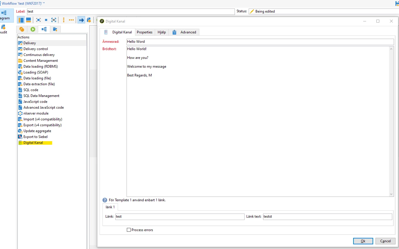 We have built a custom workflow node that works as a digital channel. What it does is basically takes a message /markdown and sends it via API to our Webpage to a customer.