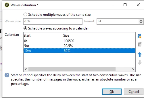 It works if i set 5 wave with 20% size or 4 waves with 25% size, but if I try to set 6 waves it doesn't work (i've tried with 16%,17%,16,6%16,7%). So my question is: i can only set with percentage with integer numbers?