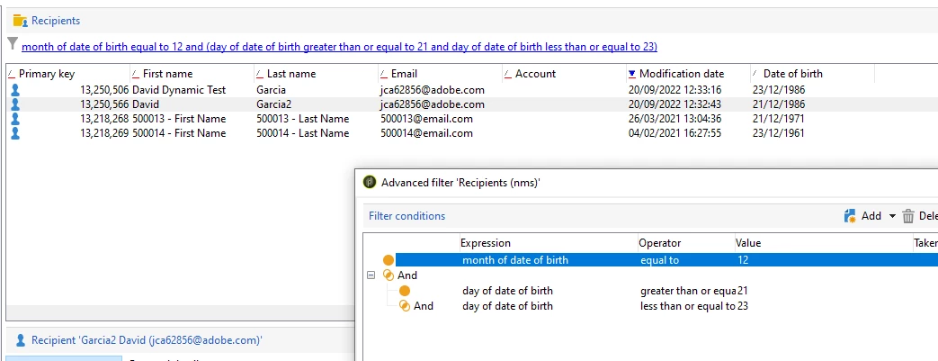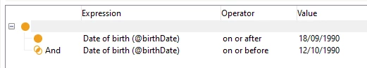 But seems not what I want, I need to send a communication for the people when date of birth is between this two dates above. Any ideas?