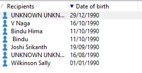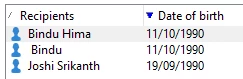 Select recipients DOB between 2 specific date