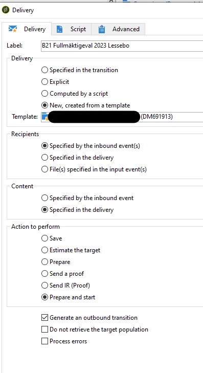 Execution folder and Folder of the delivery template is the same as for other deliveries. Same for the workflow, it has the same folder as the other wkfs.