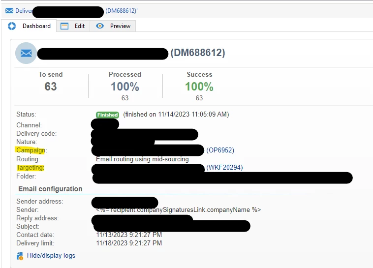 I have a problem, we see in the systemet that we have some deliveries (send-outs) that are not linked to any campaign.