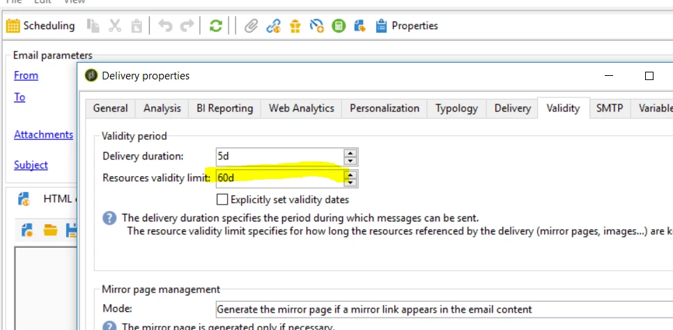Sent out Email but Mirror Page is valid for only 60 days, Is it possible to change its validity for Mirror pages to 120 days