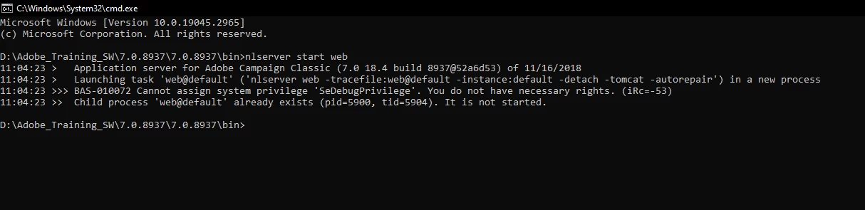 Server error "Child process web@default already exist. It is not started"