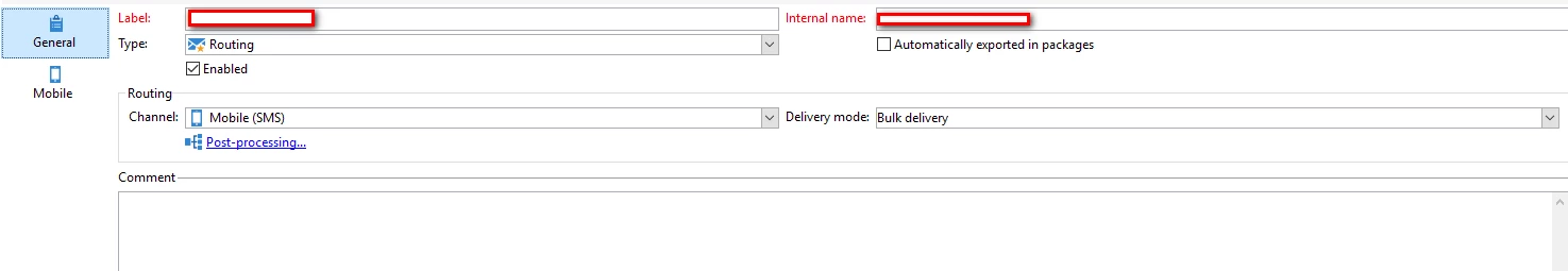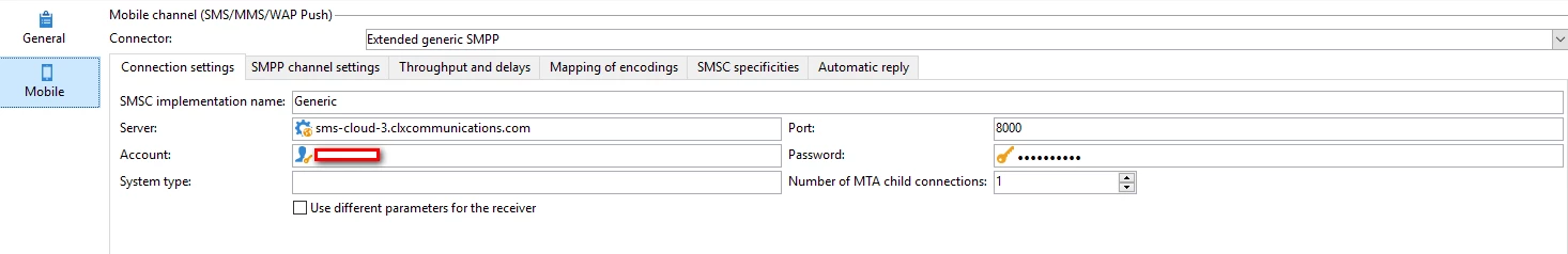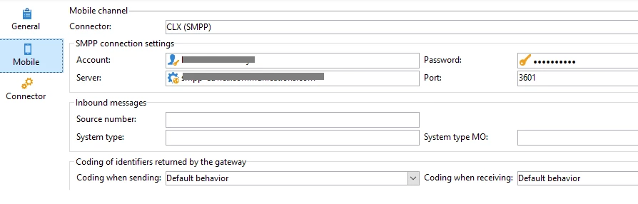 The SMS external account config is below-