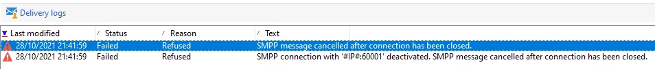 I newly configured an SMPP External Account and performed a testing on my mobile number but it is getting failed due to below error. Kindly help me understand what causing this error and how to fix the same.