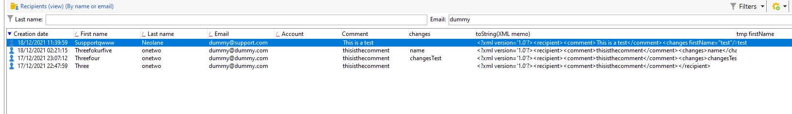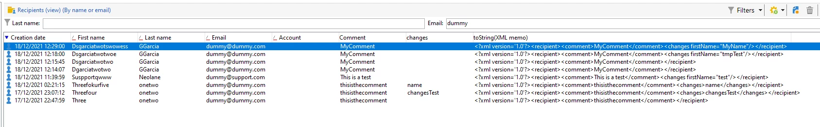 <recipient _operation="insert" email="dummy@dummy.com" firstName="Garcia" xtkschema="nms:recipient">