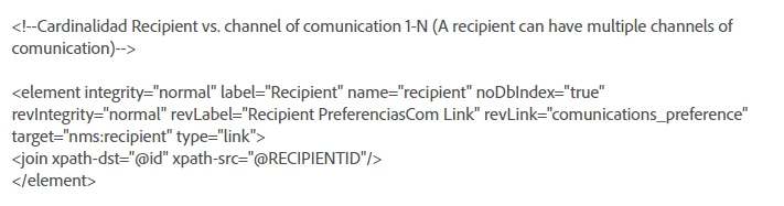 So, I've a case where we need the values from "channel_of_comunication_id" from schema "comunications_preference" when filtering "recipients" schema (the OOTB recipients).