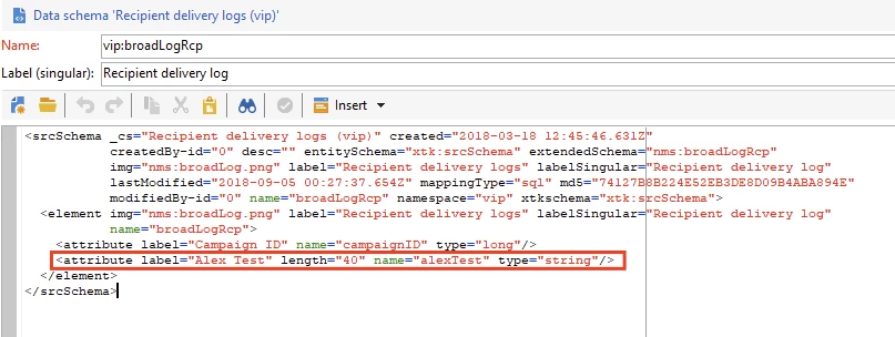 I have extended the delivery logs schema, nms:broadLogRcp, to include three additional fields that we need to use.