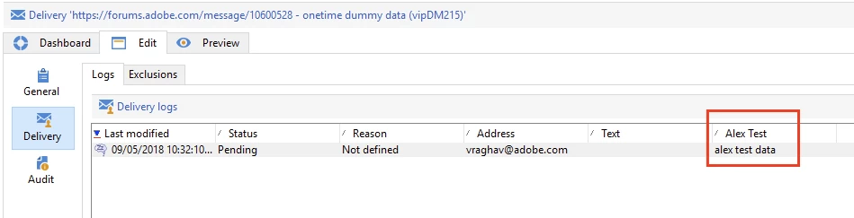 Summary: I cannot get my worktable data to get saved to the delivery log (broadLog). I'm using a custom target mapping that uses the [targetData/@fieldName] convention.