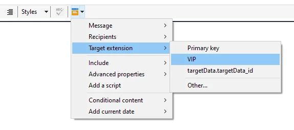 For ex: I want to include a VIP number to the email delivery where the VIP column is not present in the recipient table. When i tried adding targetdata it says undefined. Please suggest.