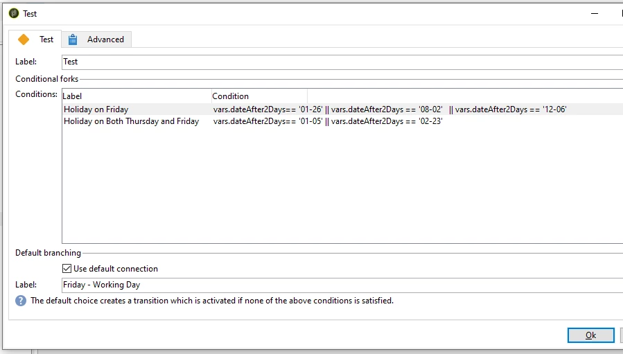 //Default connection Label as 'Friday - Working Day'