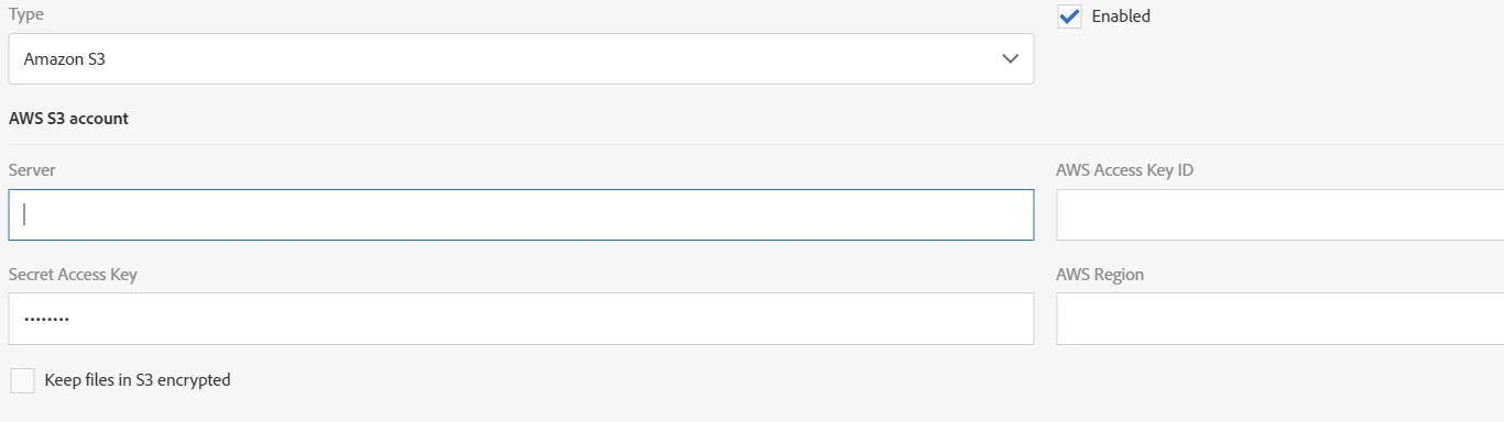 1>. Create an external account of type Amazon S3 in ACS using the correct key and server address :