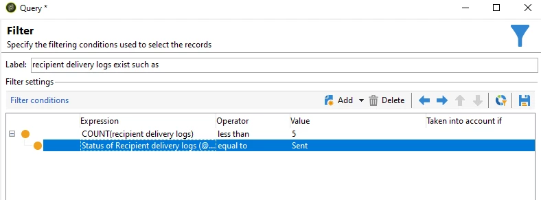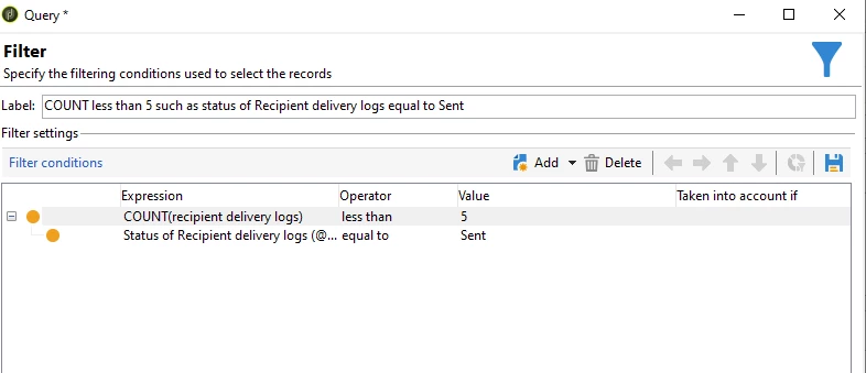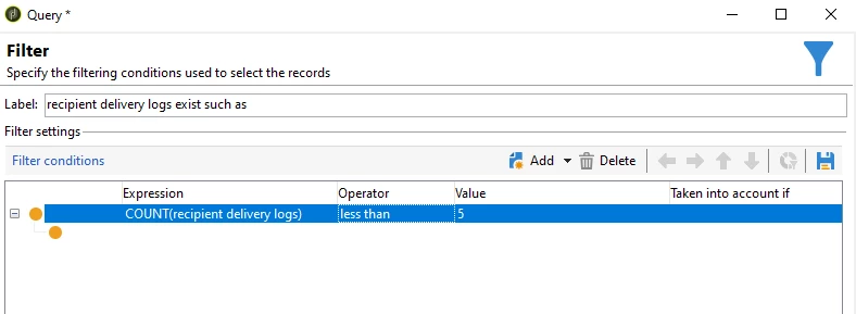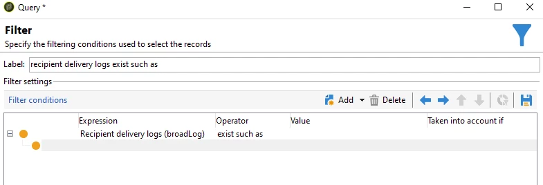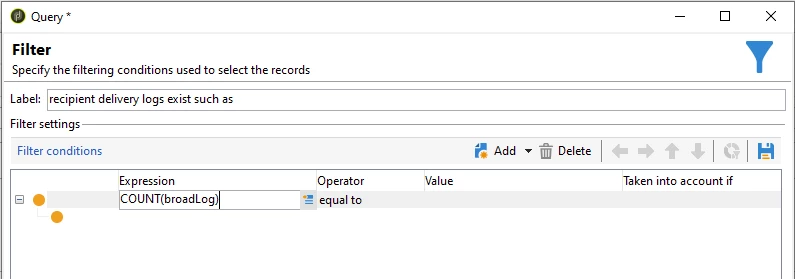 Select filtering condition: