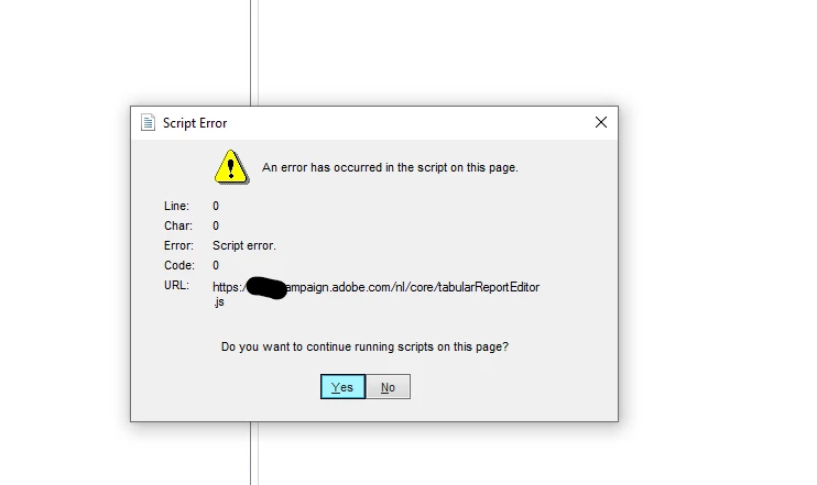 I am working on reporting for the marketing campaigns. However, While using the list with group table editor in the report, I'm getting the below scripts error. This same is working fine in my colleague's machines. Also, from the error, it clearly seems that it is related to console error, and not the instance issue. I have already tried uninstalling and installing the console again, but no luck.